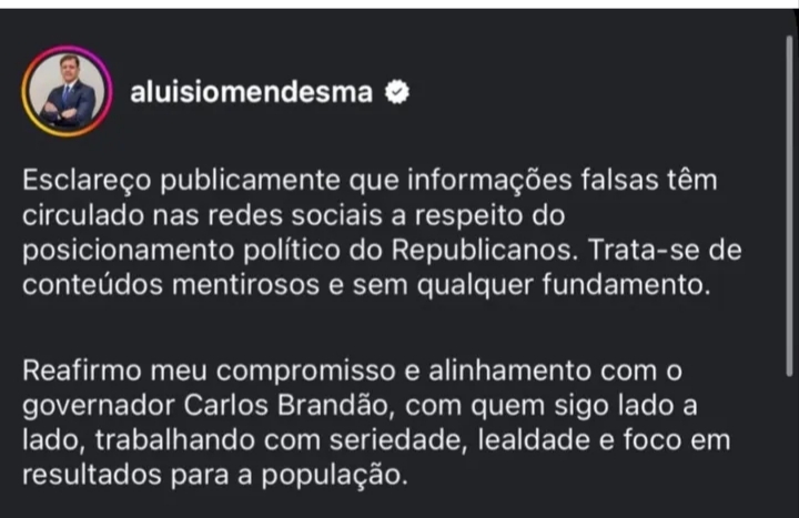 Após a circulação de um vídeo em formato de podcast sugerindo que o Republicanos teria rompido com o grupo Brandão no estado, a rápida repercussão levou o deputado federal Aluísio Mendes, presidente da legenda no Maranhão, a se manifestar de forma incisiva para desmentir a narrativa.