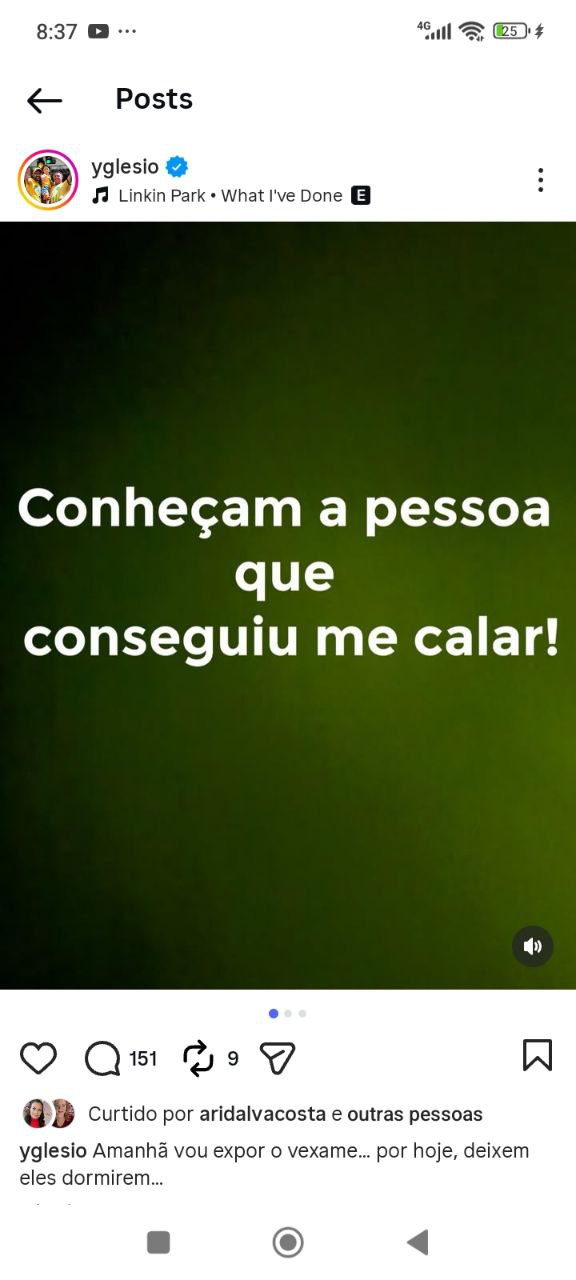 Yglésio promete “resposta” e reage com sarcasmo após decisão judicial.