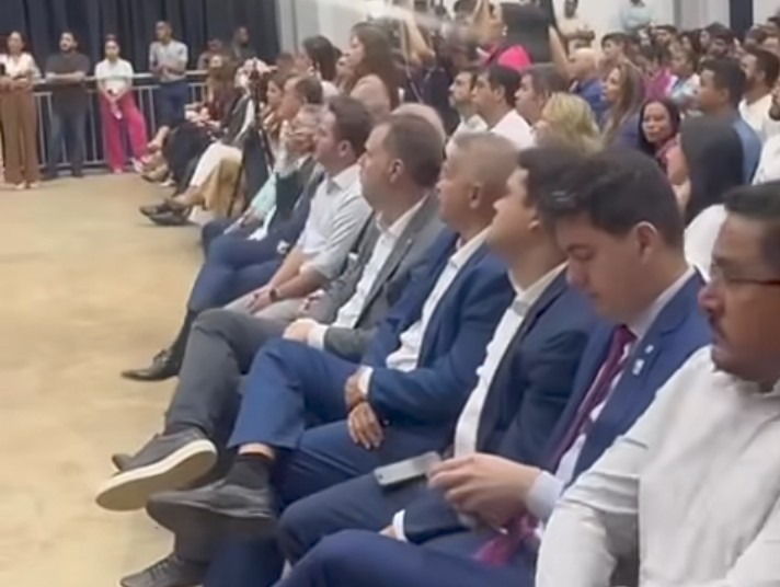 Sob as luzes do evento, aliados históricos do dinismo surgem alinhados ao prefeito. Sorrisos largos. Palmas sincronizadas. Nenhum constrangimento visível. A trincheira virou carpete. O confronto, rodapé de arquivo.
